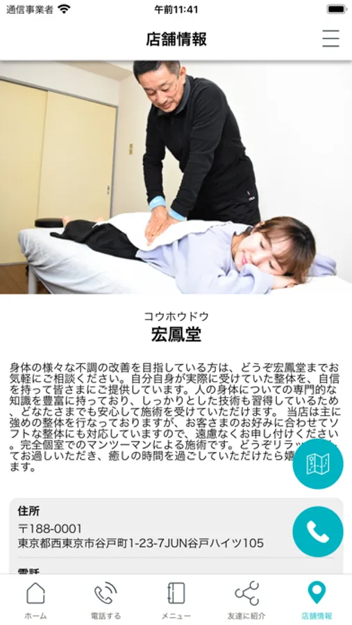 店舗のマップが表示され、地図アプリとも連携しているので、初めてのご来店の時も簡単に見つけることができます。