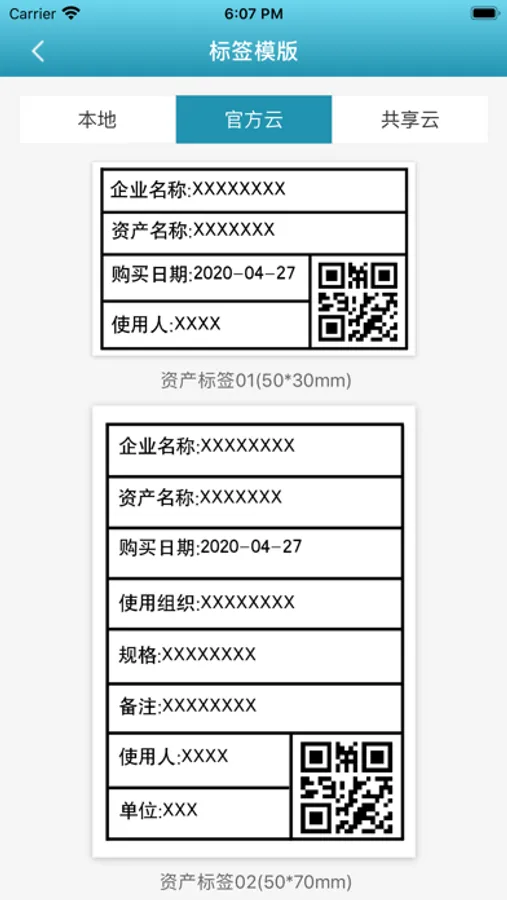 4.标签打印:提供云模版服务,实现多端模版共用,支持批量打印。