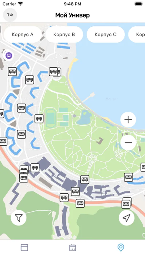 Мой Универ даёт студентам и сотрудникам доступ к полезной информации о ДВФУ, такой как последние новости из жизни университета, расписание занятий, а также карту Кампуса. Карта содержит информацию о графике работы организаций, находящихся на территории университета, а также позволяет в режиме реального времени отслеживать движение внутренних автобусов.