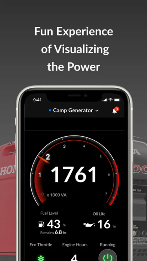 Honda “My Generator” smartphone application is for use only with Honda generators equipped with Bluetooth® technology. The application is able to do the following convenient functions:
