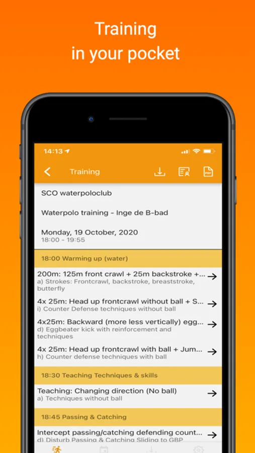 Print the sessions directly from your smartphone or tablet using the PDF function. Or, download the sessions and drills on your smartphone or tablet for offline use. All sessions and drills at your fingertips!