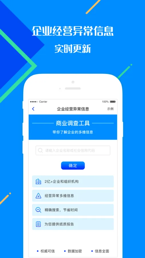 百业征信, 查征信、查信用、查企业、查老板、查人脉,找客户、谈合作、做调研,你需要的通通搞定! 关系网任意查,上下游一把抓,企业信用、个人风险清晰透明!