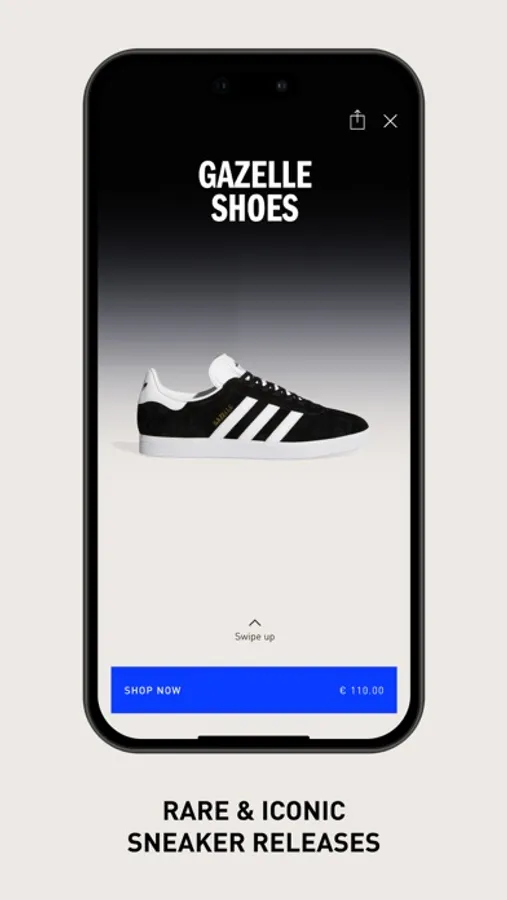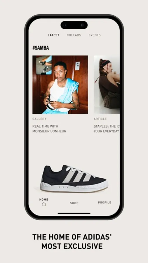 Get access to purchase the most sought-after and niche adidas sneaker drops and collab designs. These include partnered releases from the likes of A Bathing Ape, Bad Bunny, Balenciaga, GUCCI, Moncler, Pharrell Williams’ Humanrace, Prada and more. See release dates and set notifications and reminders for upcoming drops from your settings.