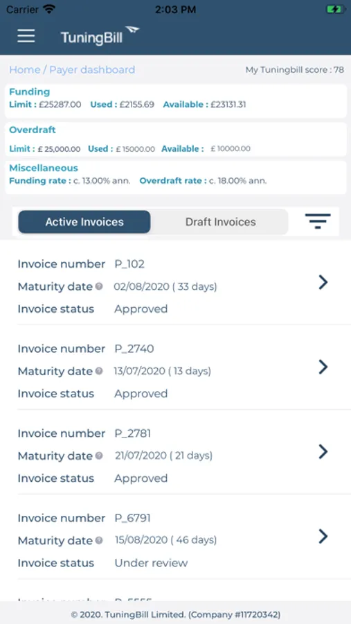 TuningBill is a digital banking solution that enables cost-effective ways to acquire and serve small importers and exporters. TuningBill helps the importers and exporters get easy access to working capital, competitive FX rates and multi-currency accounts to manage their future cashflow; all this at a fraction of the costs compared to what they usually pay to traditional banks. if you have any query, please contact us at info@tuningbill.com