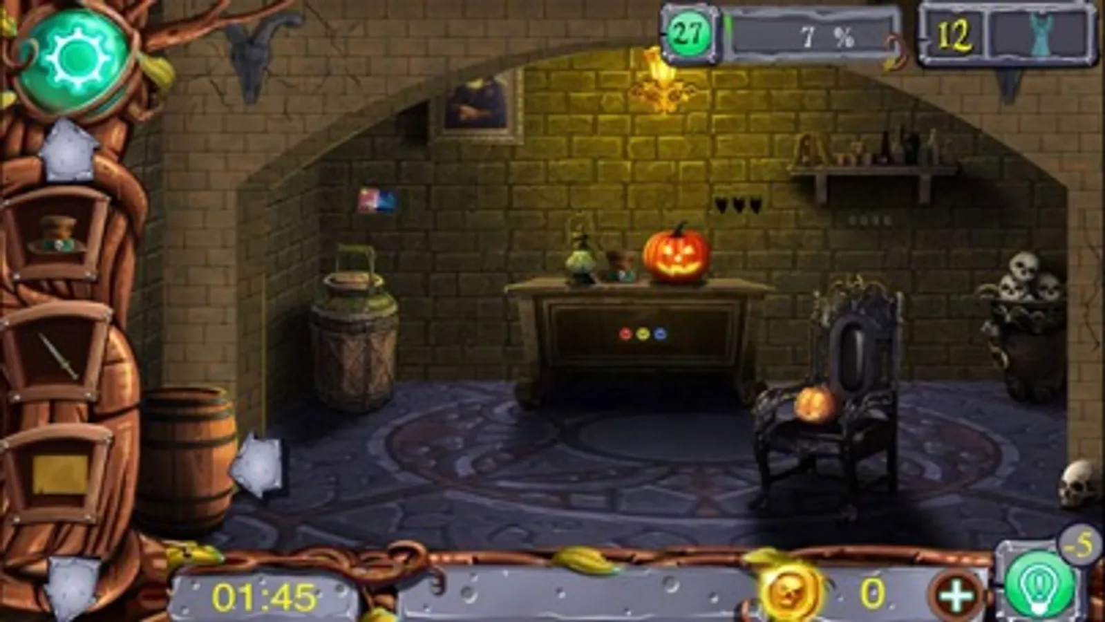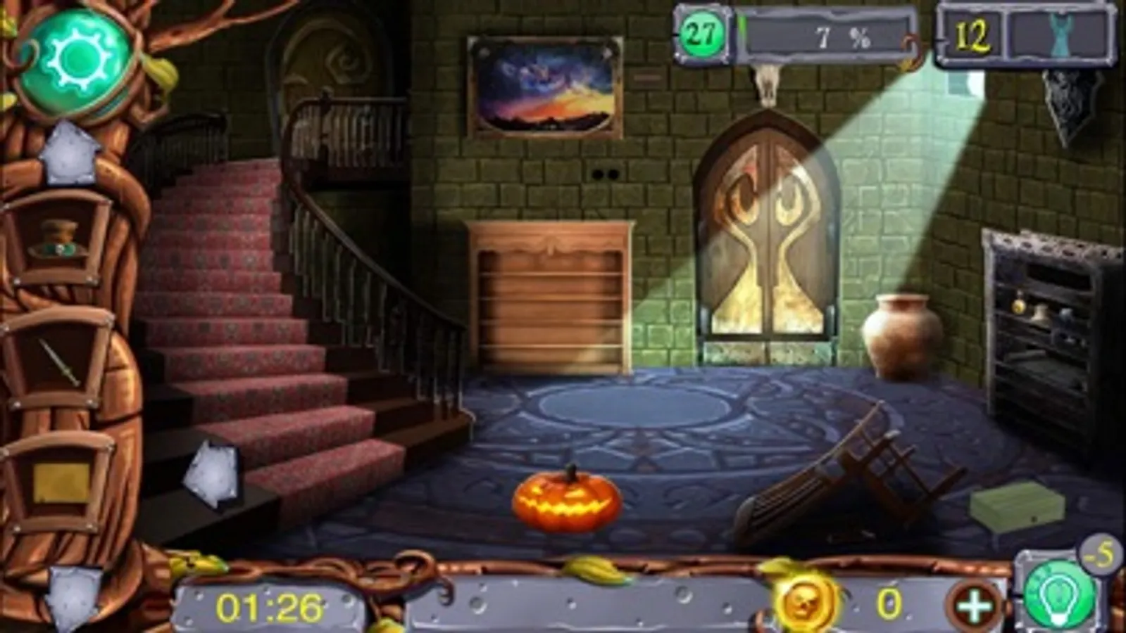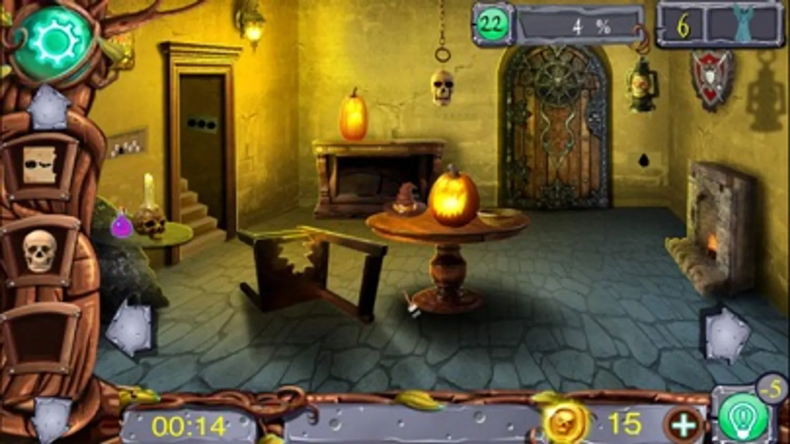Escape from the Darkness, Be careful of the scary black shadows. Then find the ghost-lighted Pumpkins. You are ready to inventory secrets in the Panic Room and find the Hidden objects get out of the room escape.