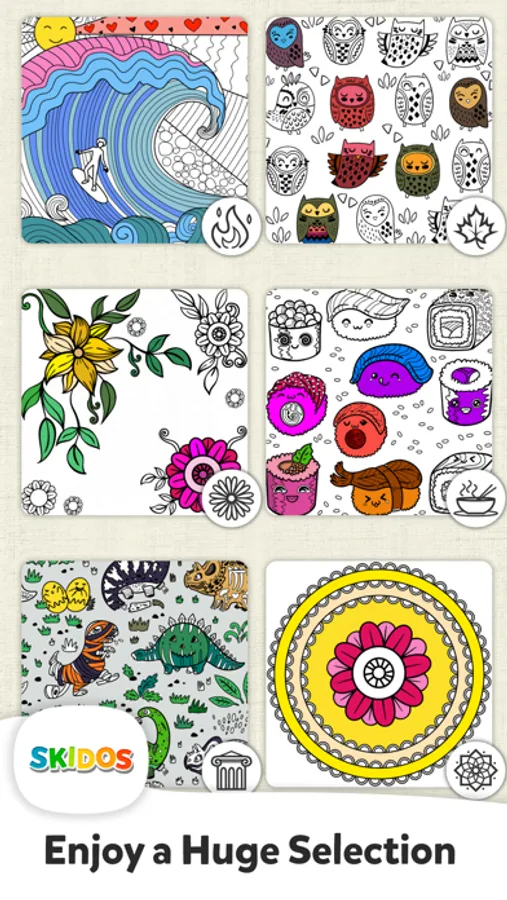 SKIDOS Coloring Book for Kids is a painting game for girls & boys of age 6+. Your kids will find a variety of images to color - cute animals, wonderful landscapes, buildings & beautiful mandalas. You will find simple coloring pages as well as more advanced and detailed drawings that will be fun to play with for children as well as their parents.