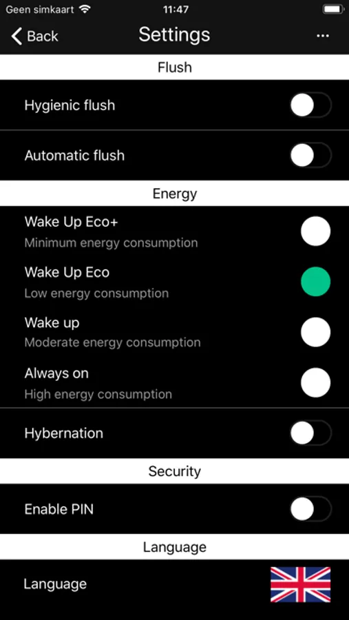 The app can be configured in several languages: Dutch, English, German, French, Swedish, Norwegian, Finnish, Danish, Spanish, Portuguese, Italian and Cantonese. The language can also be changed later.
