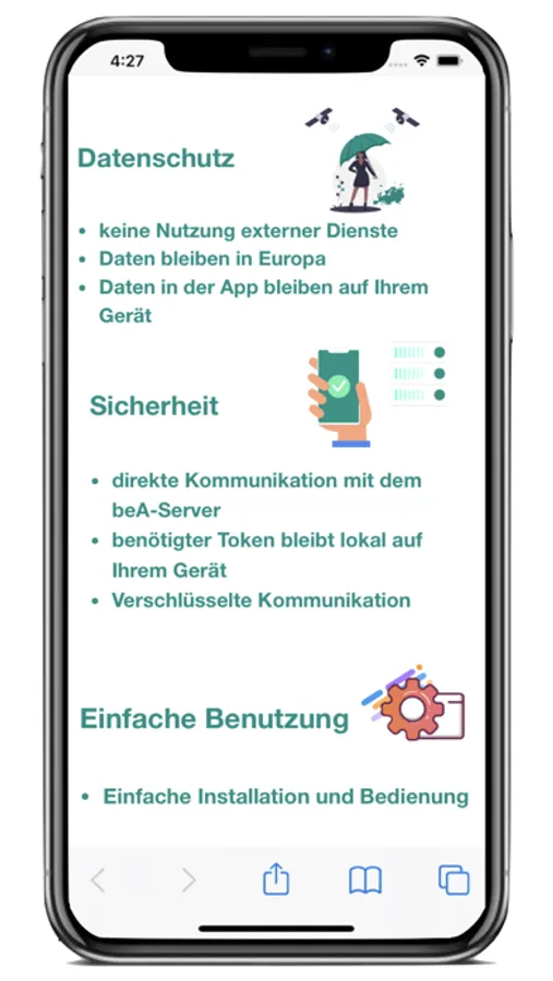 Diese App ermöglicht die volle Bearbeitung von beA-Nachrichten direkt im eigenen beA-Anwaltspostfach inklusive PDF-Vorschau von Dokumenten.