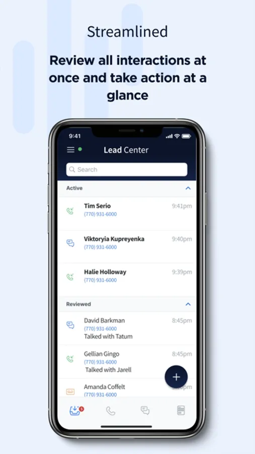 The Lead Center mobile app consolidates your inbound and outbound interactions and allows you to manage your calls and texts from your mobile phone. It empowers your team to manage communications from the office or on the go, and provides a flexible, easy-to-use system for capturing, engaging with, and managing leads.