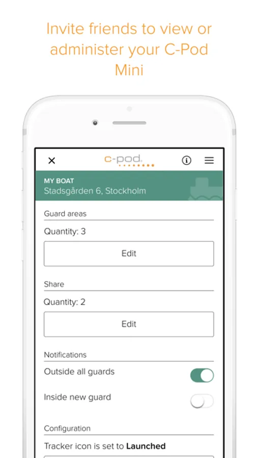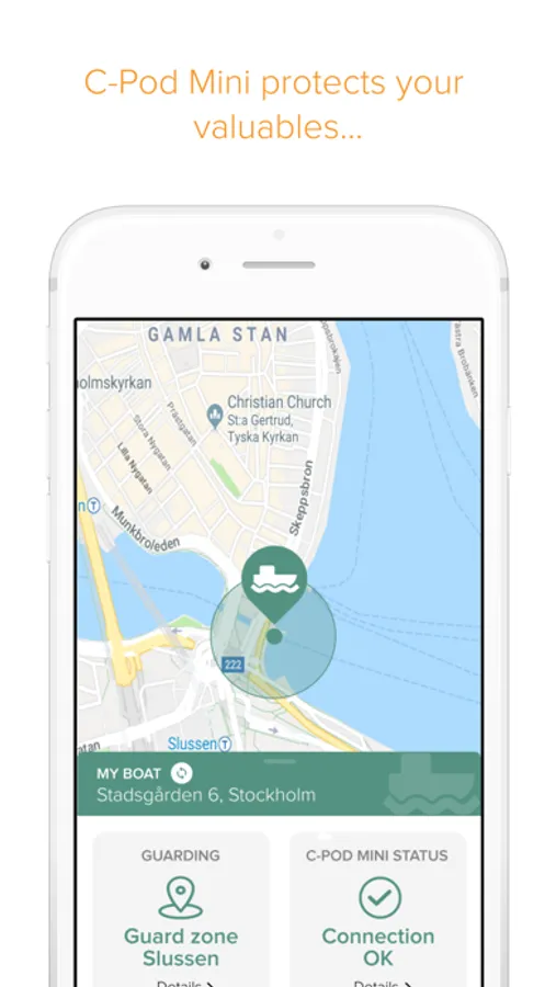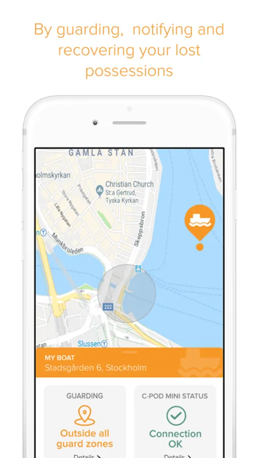 • Get an SMS and Push notification alarm if your boat is moved outside the created geofence