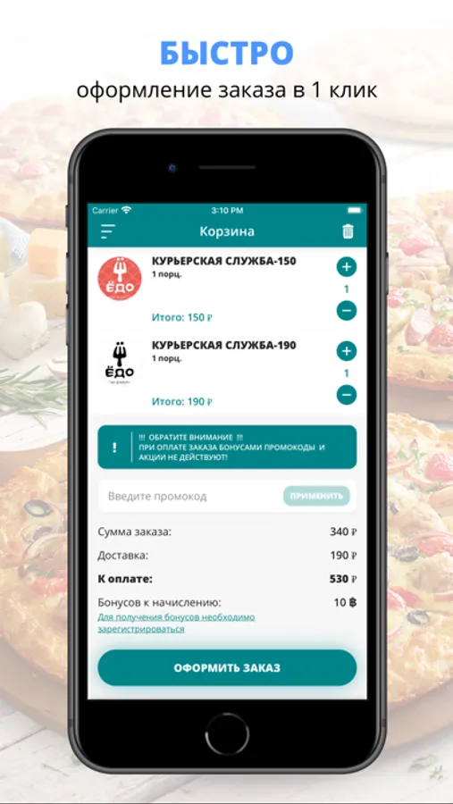 Скачивайте наше приложение, оформляйте заказ и наслаждайтесь любимой едой, где бы Вы ни были!