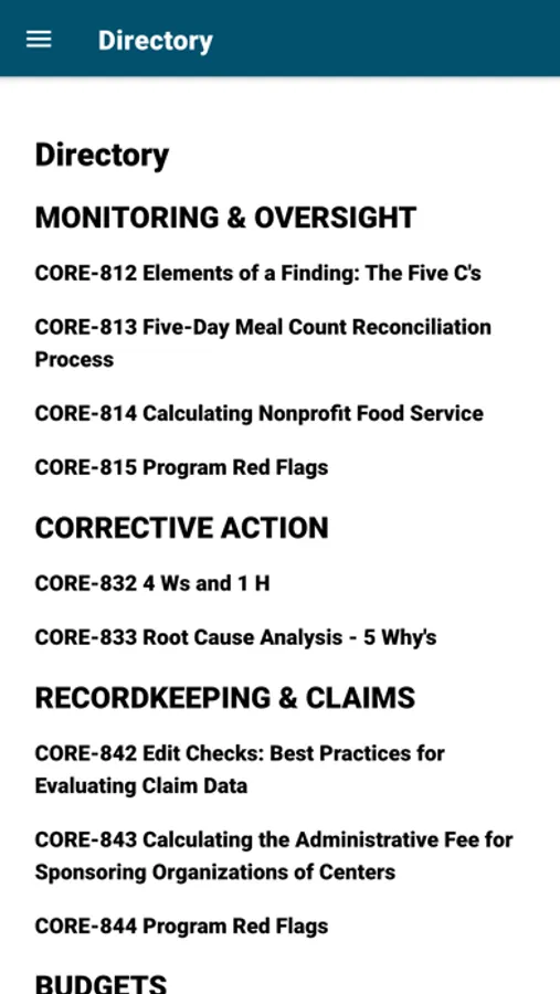 The USDA CORE App includes interactive child nutrition related micro lessons. Simply tap the buttons on the home screen to launch lessons on the following topics: