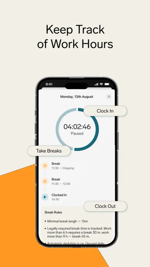 • Track Time on the Go: Clock in, clock out, and take breaks with just a tap. The latest version of our app supports Live Activities, so you can view your tracked time from your lock screen, without even opening the app.