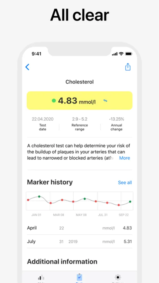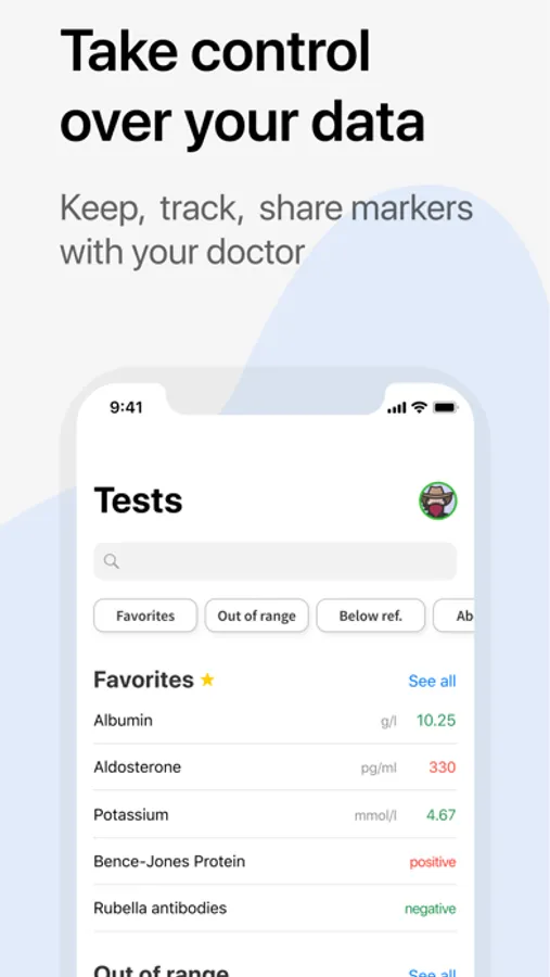 Unlike other services, it is not necessary to enter your results manually. When you send us photos or scans of your lab tests our system digitizes and stores them in the application.