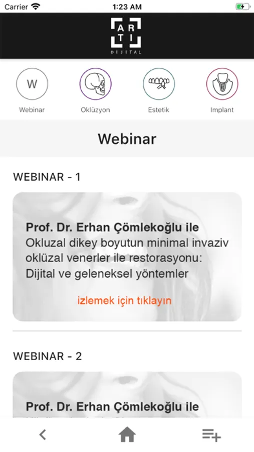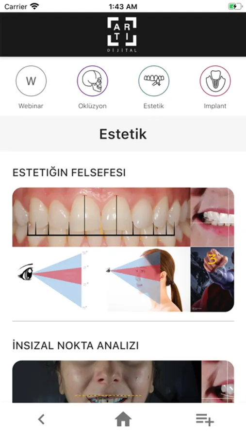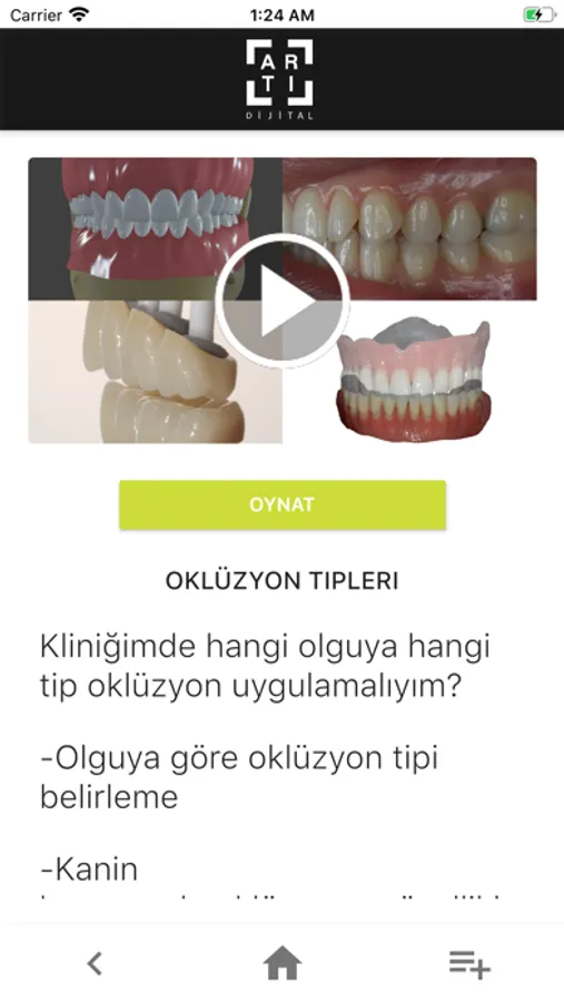 Dolgu, implant, diş çekimi, kanal tedavisi vb. pratik ve uzmanlık gerektiren konularla ilgili hazırladığımız videoları, Artı Dijital Mobil APP üzerinden sağlayacağınız üyelikle sizlere sunuyoruz. Kurduğumuz bu online eğitim sistemi sayesinde, diş hekimliği fakültesinden mezun olmuş hekimler öncelikli olmak üzere, bu sektörde çalışan asistan ve teknisyen gibi personellerin, klinik ortamında bulunmadan önce deneyim kazanmasını sağlıyoruz.