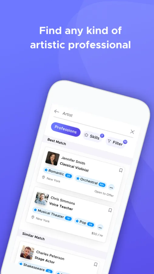 Hire pros for last-minute engagements with the tap of a button! Payments are automatic and secure. Browse their featured media, skills, reviews, and experience.