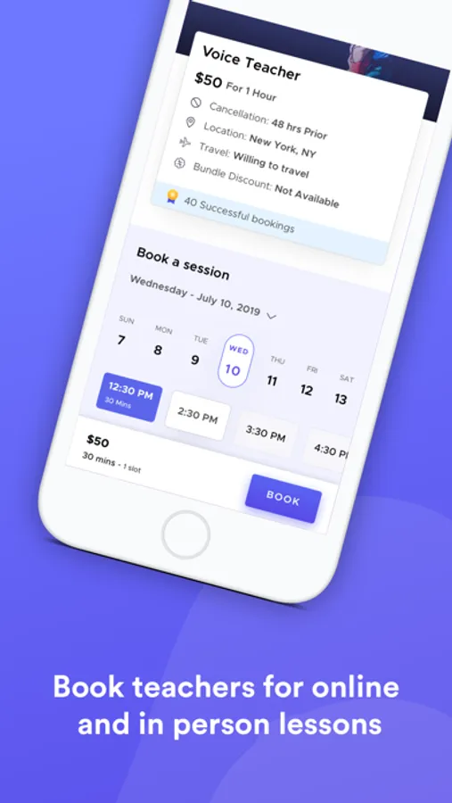 Find the perfect teacher or performer and manage bookings with an automatic scheduling system that links to your personal calendar.