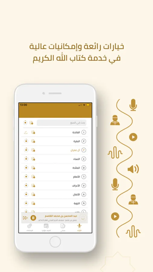 This global platform is featured with ease of use, being light and fast, having large number of recitations including rare recitations, high quality audio files suitable for users and also radio stations, TV channels, websites and applications.