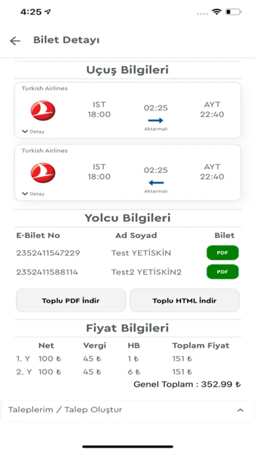 Bilet İçerisinde Talep Geçebilme