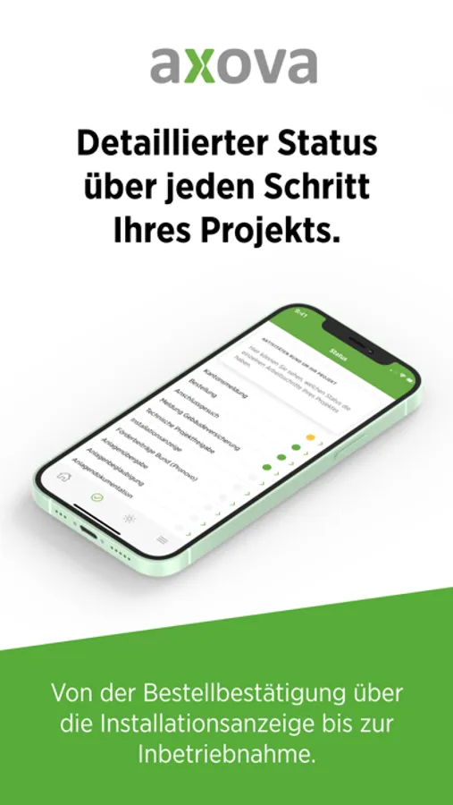 Sie haben bei uns eine Solarstromanlage gekauft und möchten wissen wie der Stand der Dinge ist. Mit der Axova App werden diese Fragen beantwortet.