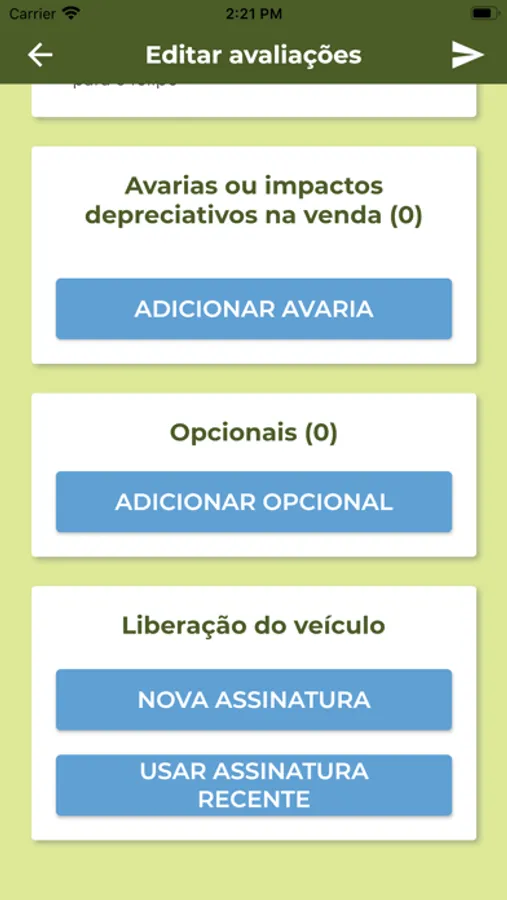Nele será avaliado o estado físico do ativo por meio de fotos e descrições de seus itens, dando transparência na informação junto ao cliente (Funcionário, Empresas e Lojistas).