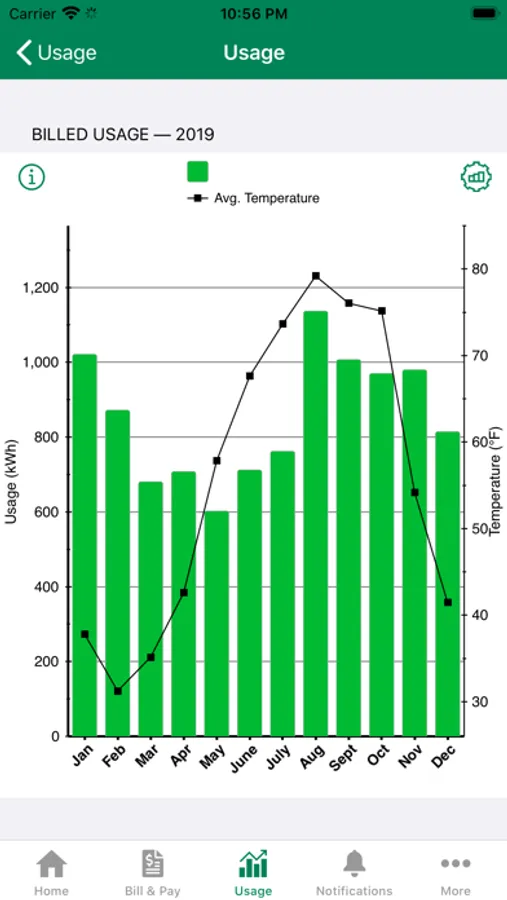 (OEC Electric Members Only) View energy use graphs to identify high usage trends. Navigate graphs quickly using an intuitive gesture-based interface.