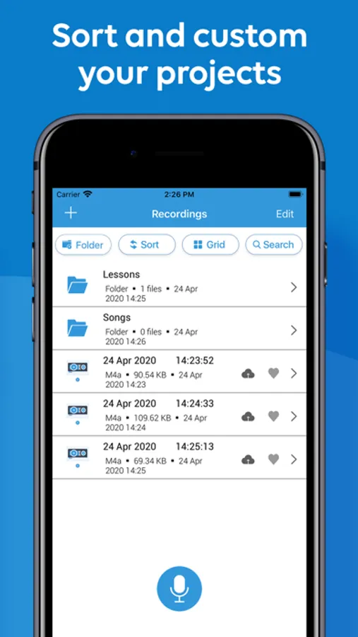 High-quality audio recording: The app allows users to capture high-quality audio recordings using their iOS device's microphone. The recordings are saved in the app's internal storage, making it easy to access and edit them later.