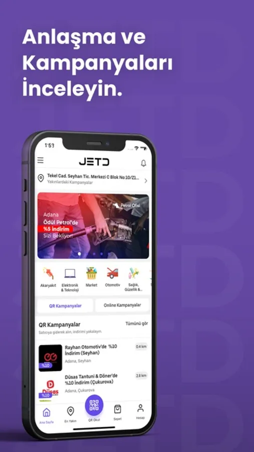 Yakınındaki müthiş fırsatları keşfet, promosyonlardan haberdar ol. JETD ile daha az ödemenin keyfini çıkar, anında indirime kavuş.