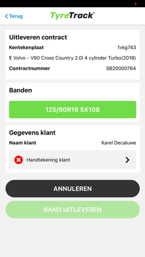 Mogelijkheid om banden te reserveren, uit te leveren en weer in te nemen