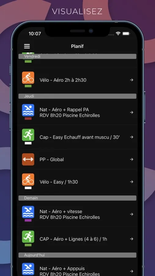 Accédez à vos entraînements planifiés et réalisés instantanément !