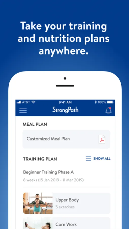 With the StrongPath App, your Coach can help you start tracking your workouts and meals, measuring results, and achieving your fitness goals.