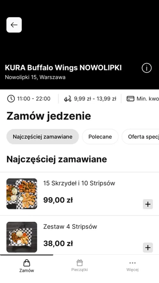 Oprócz zamawiania online aplikacja pozwala sprawdzić: