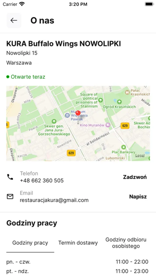 - aktualne menu i promocje