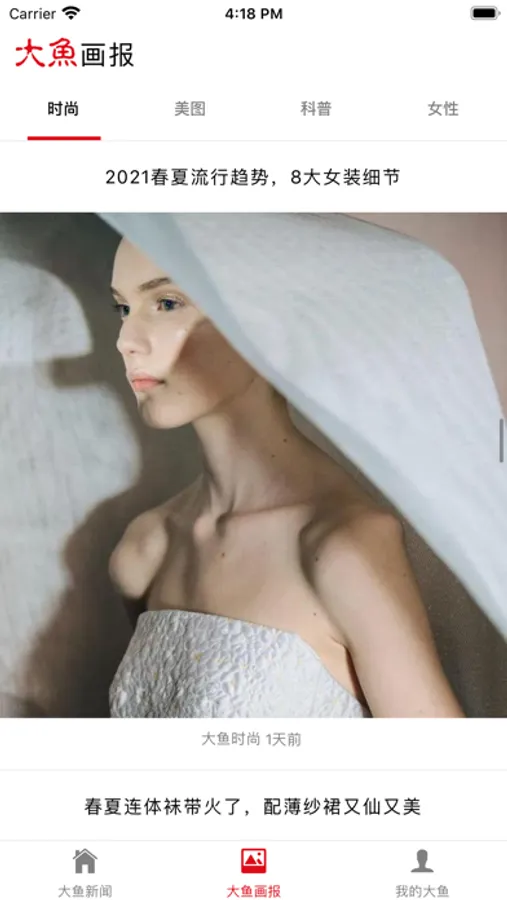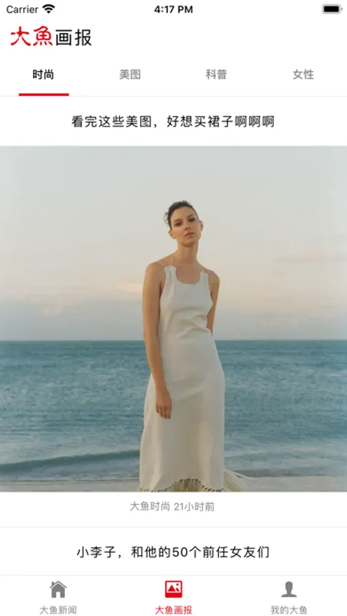 大鱼新闻还包括有大鱼画报,提供时效性较弱的杂志类型的阅读内容。风格清新,阅读轻松。