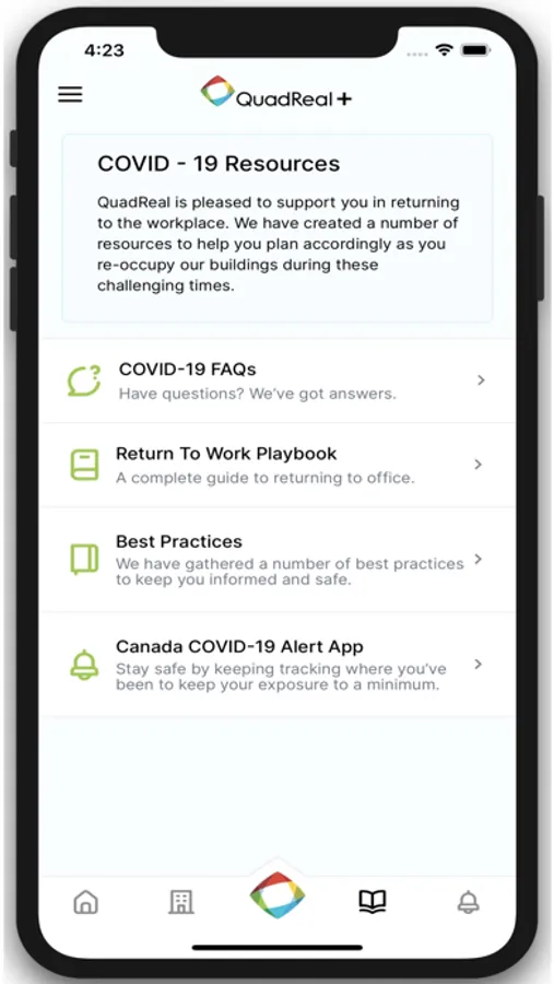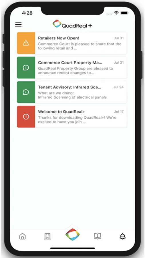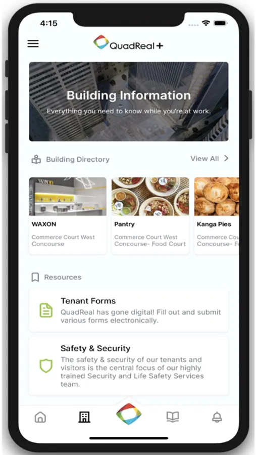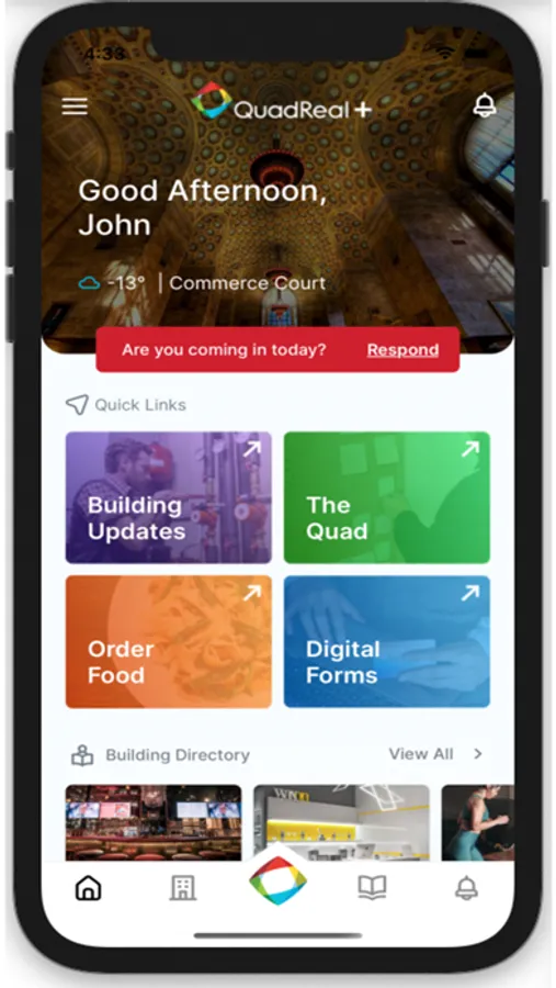 Quadreal+ makes your workday more safe and efficient! Stay informed on what's happening at your office, in your building and the community you work in. Connect with us in real time to ensure you're in the know, wherever, whenever! We have big plans to take your work experience to the next level, download Quadreal+ today and be the first to experience new features including exclusive property events, community boards, promotions and more!