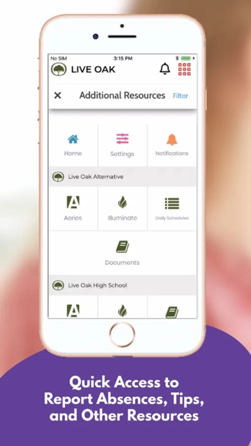 The app includes information for the district and all schools. Filter by the school your child attends to feature information for that school.