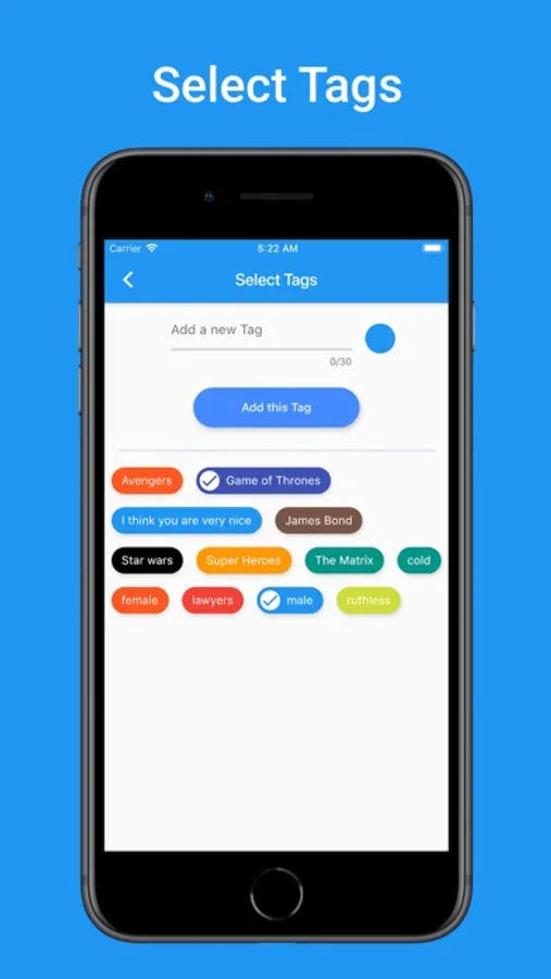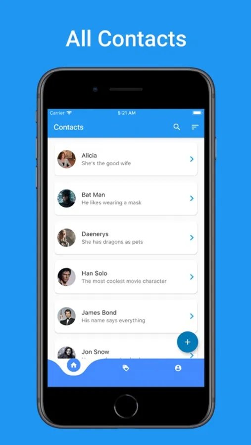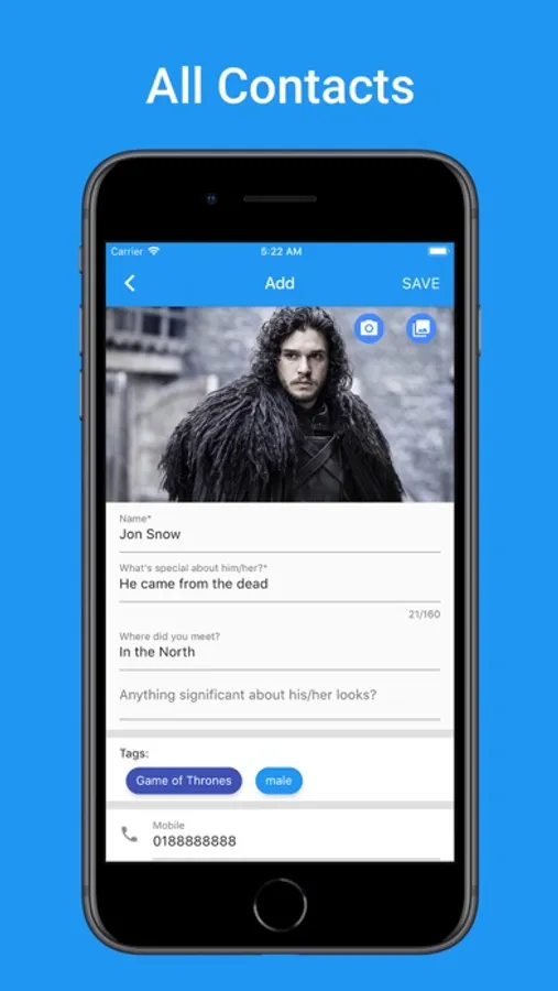 One great feature of this app is Tags. You can use tags to organise your contacts. One contact can have many tags. More importantly, you can also give different colours to different tags.