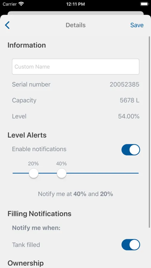 3. Receive instant notifications on your smartphone when your tank reaches configurable and pre-determined levels.