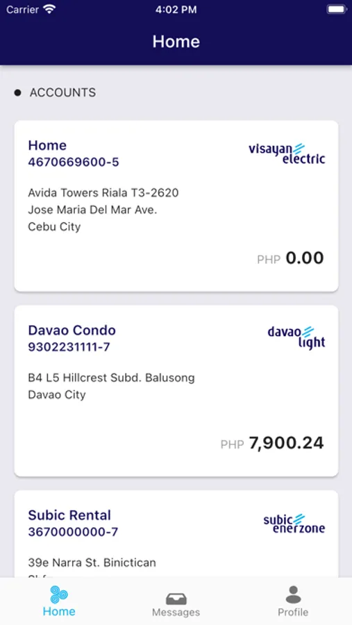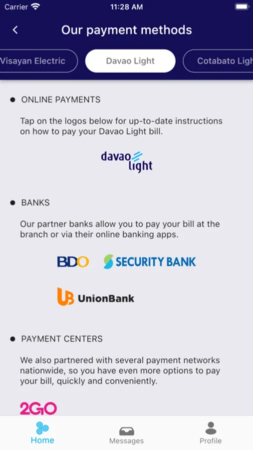 MobileAP is your one-stop utility app for your accounts with Visayan Electric (VECO), Davao Light (DLPC), Cotabato Light (CLPC), Subic Enerzone, and LIMA Enerzone.