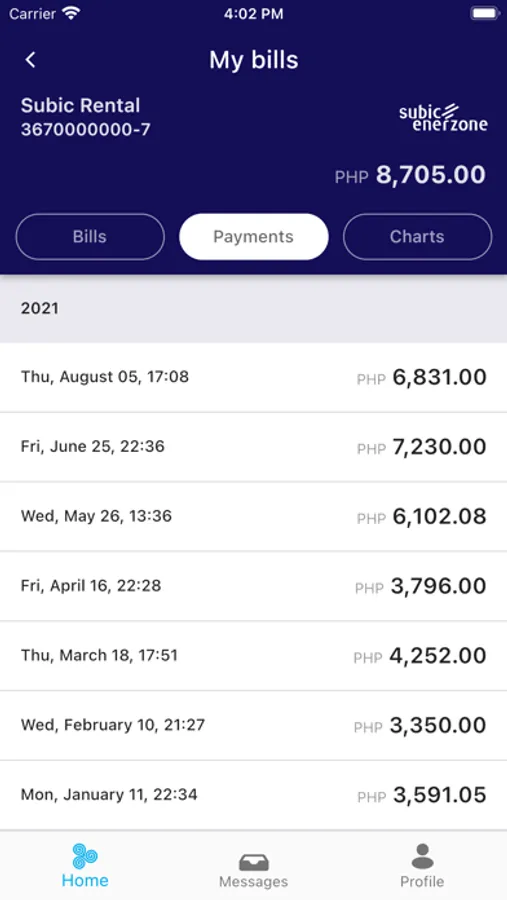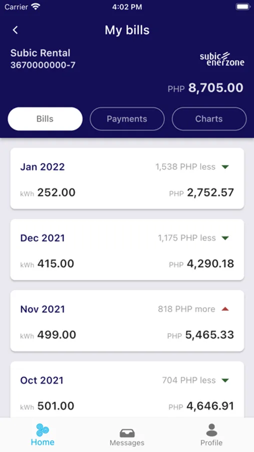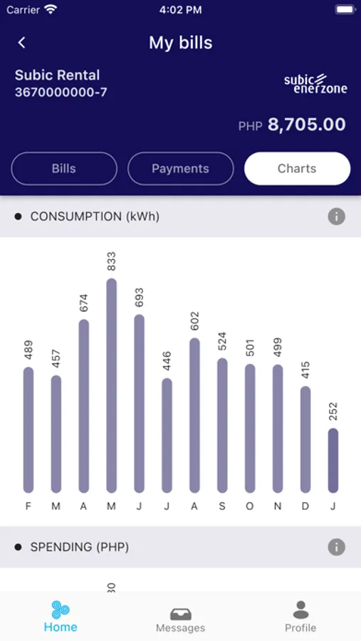 - Track your payments and view charts for consumption and spending