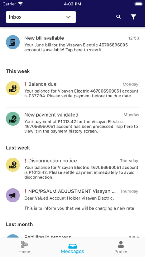 - Receive real-time notifications on new and updated bills, payments acknowledged, warning and advisory messages