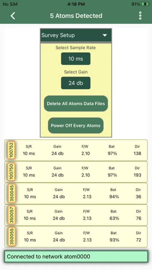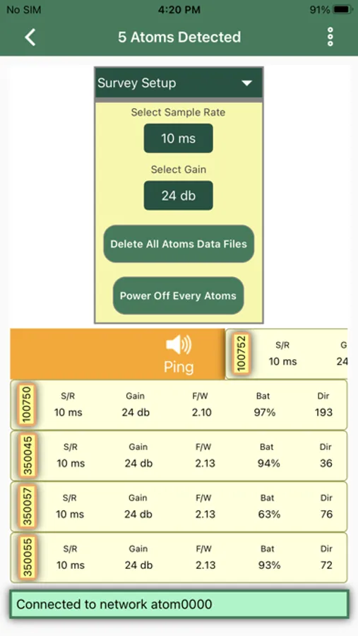 Because the Atom Downloader App is capable of offloading data from multiple Atom Wireless Seismographs at the same time, it is possible to download and begin processing your data more quickly and seamlessly than with traditional wired connections. This is especially useful for large, multi-channel surveys or in cases where it is desirable to download data without moving the Atom or altering your survey’s geometry.