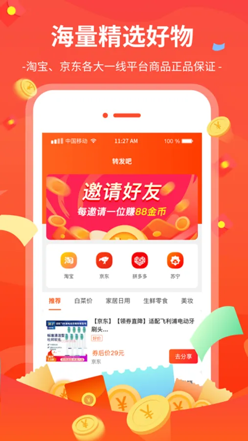 淘赚钱返利-淘宝贝优惠券商城购物返利