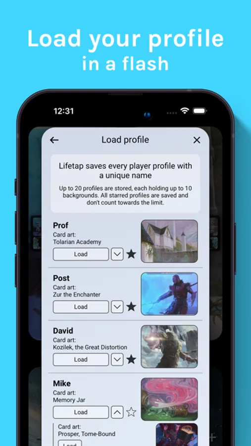 - Player profiles: each profile with a customized name is automatically saved along with their card art and/or color customization, letting you load your profile in a couple taps