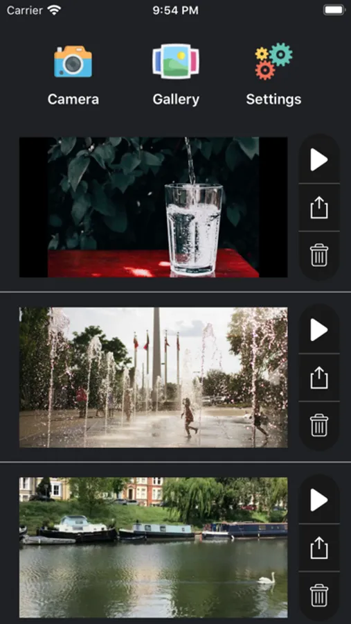 - Share videos through social media or save directly to your photo albums
