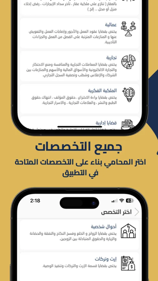هل تبحث عن استشارة قانونية وخدمات ميسورة التكلفة ومريحة وموثوقة؟ لا داعي للبحث بعد الآن! تطبيقنا يوفر لك الاتصال بمحامين مرخصين يتخصصون في مجالات قانونية متنوعة، يلبون احتياجات الشباب المحترفين ورواد الأعمال وأصحاب الأعمال والشركات الناشئة والشركات الصغيرة والمتوسطة والأفراد مثلك.