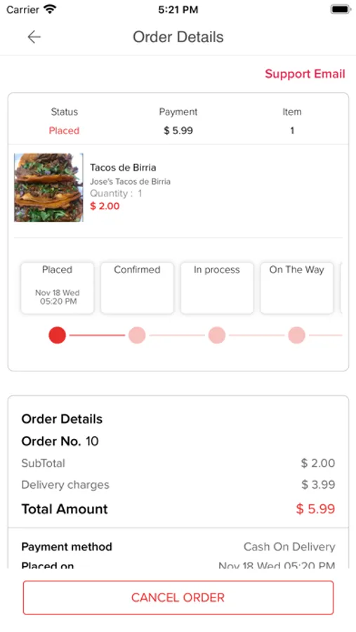 Once your food order is place you can track your driver or if you are pick up the order in person it will notify you when the order is ready for pick up.