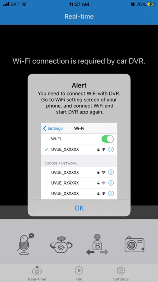 This app can play live video feed and recored files from Wi-Fi enabled Car DVR.