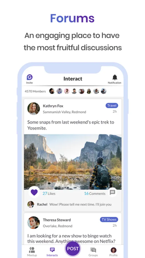 • Anytime you have a question or need a recommendation or feel like sharing something with your community, just head to the feed and start interacting.