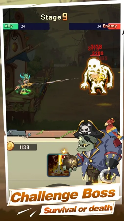 - BOSS CHALLENGE: When you are ready,go challenge zombie waves and giant zomebie boss!